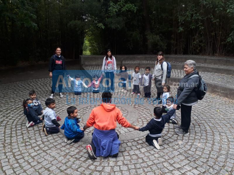 Con el aval del Gobierno Municipal, los niños junto a las docentes recorrieron el lugar, paseando por la máquina sonora, la montaña encantada, y la máquina de trepar.