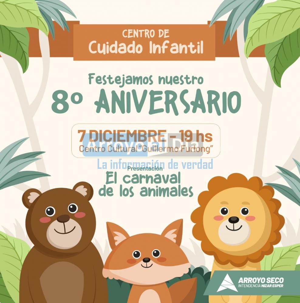 La fecha designada para celebrar el 8° aniversario será el 7 de diciembre a las 19:00hs en el Centro Cultural "Guillermo Furlong", con la presentación estelar de "El Carnaval de los Animales".