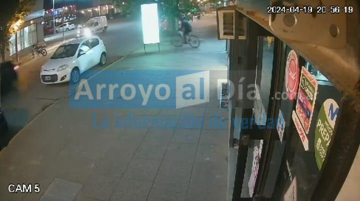 Cerca de las 21:00 sobre a la vereda de un local de venta de ropa ubicado frente al banco Macro, un delincuente vio la oportunidad y montó el rodado y escapó del lugar por calle Irigoyen. Cualquier información llamar al 911.