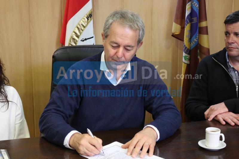 Lisandro Enrico y el Secretario de Aguas y Saneamiento, Leonel Marmiroli, estuvieron presentes para la firma del convenio de Saneamiento de las lagunas de tratamiento de líquidos cloacales.