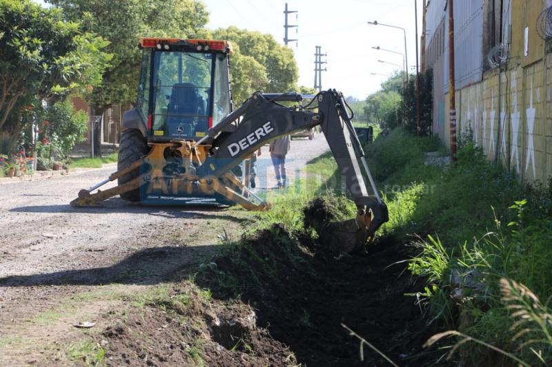 En la mañana de hoy, empleados municipales dependientes de la SecretarÃa de Obras y Servicios Públicos realizaron trabajos de zanjeo en la calle MarÃa Passoni y de colocación de escoria en el Barrio "Caritas 1"