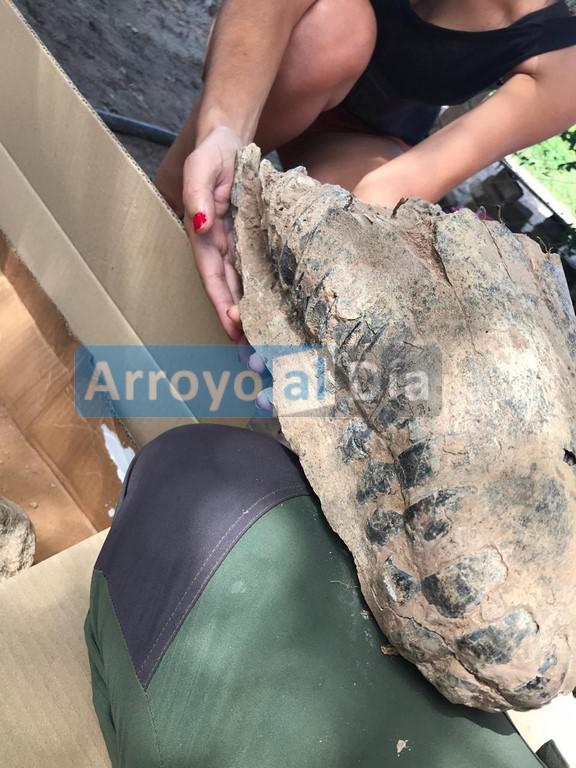 Hace unos dÃas, vecinos del lugar, dieron cuenta de la presencia de restos fósiles que no podÃan reconocer. Se informó a la SecretarÃa de Cultura que dio parte a Patrimonio Cultural de la provincia, que bajaron hasta el lugar para rescatar el esqueleto.