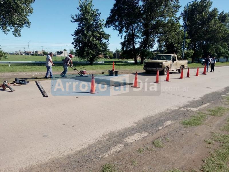 Empleados de Obras y Servicios Públicos, durante el dÃa de hoy, estarán construyendo un nuevo reductor de velocidad frente a la plaza Raúl AlfonsÃn, ubicada en el acceso a la autopista.