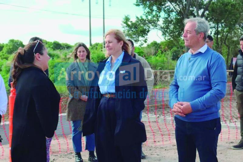 La vicegobernadora Gisela Scaglia junto al intendente de Arroyo Seco, Daniel Tonelli, durante la recorrida de las obras del Canal Savoca en esa ciudad. Scaglia visitó la localidad santafesina para supervisar los trabajos hídricos que la provincia lleva adelante, los cuales recientemente demostraron su eficacia al evitar inundaciones en los barrios.