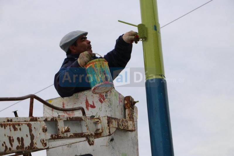 partiendo desde la Secretaría de Obras y Servicios Públicos dependiente de la actual gestión, personal municipal se sigue abocado con una cuadrilla a labores de pintura en los postes correspondientes al alumbrado público local sobre el acceso a la autopista, en la zona oeste de Arroyo Seco.
