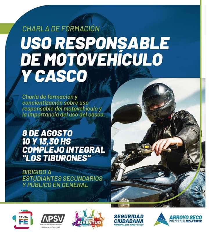 Ayer el municipio realizó en el Complejo Integral "Los Tiburones" una charla de formación y concientización sobre uso responsable del motovehículo y la importancia del casco; dirigida principalmente a estudiantes secundarios y también al público en general.