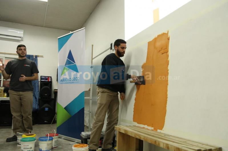 Ante una gran convocatoria de vecinos en el Salón de Usos Múltiples del Centro Cultural "Guillermo Furlong, se llevó a cabo esta mañana este curso referido a la capacitación para la aplicación de revestimiento plástico, impulsado por el Gobierno Municipal y Pinturería Mendoza de nuestra ciudad.
