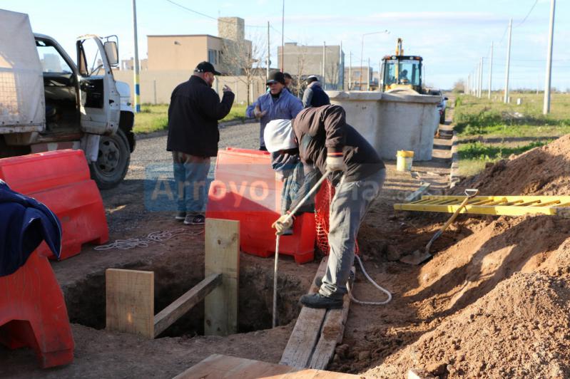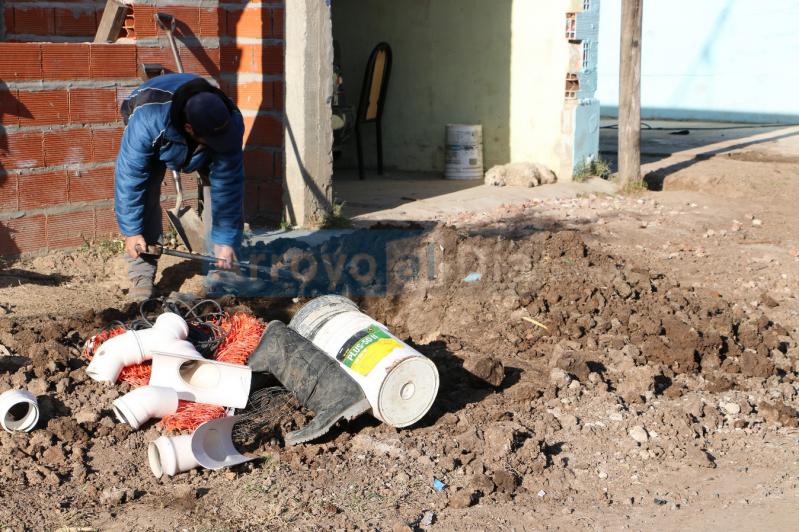 Por la mañana del jueves, personal municipal continuaba con los trabajos para la ejecución de la red troncal de desagües cloacales