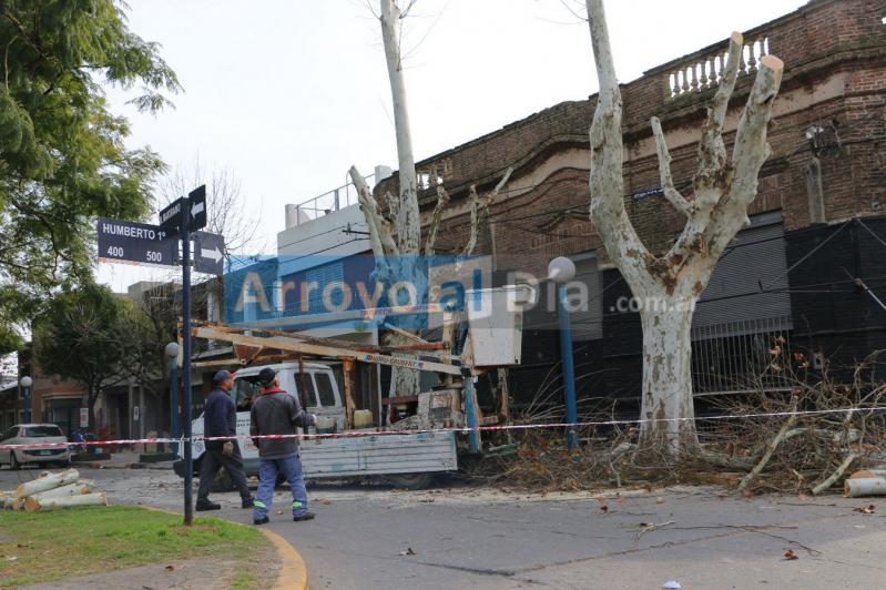 Como se viene cumpliendo en los sectores determinados por la Secretaría de Obras y Servicios Públicos, dependiente del Gobierno Municipal , se realizan tareas de poda en el arbolado público local.
