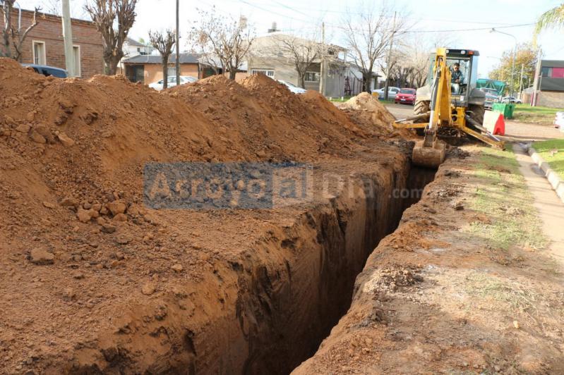 continúan los trabajos para la ejecución de la red troncal de desagües cloacales sobre calle 12 de abril.