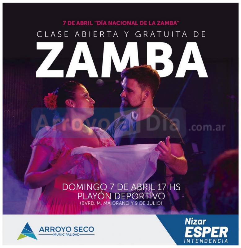 En el marco del Día Nacional de la Zamba la Municipalidad de Arroyo Seco desarrollará una Clase Abierta y Gratuita de Zamba a cargo de los Profesores Jésica Flores y Maxi Ballinari. El evento se llevará a cabo en el renovado Playón Deportivo ubicado en el Boulevard Mansueta Maiorano y su intersección con calle 9 de julio.