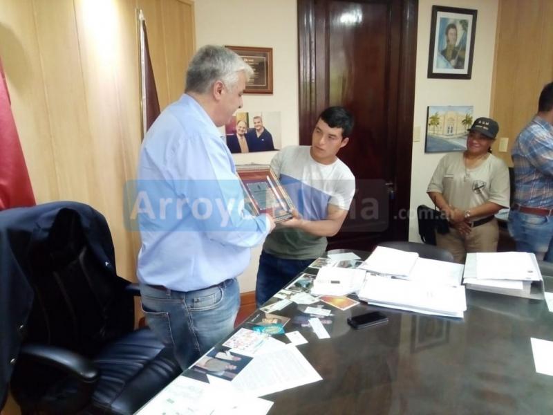 Esta mañana el Intendente Nizar Esper entregó un reconocimiento a Leonardo Sandoval, el vecino de Arroyo Seco que halló los restos fósiles de la Macrauchenia.
