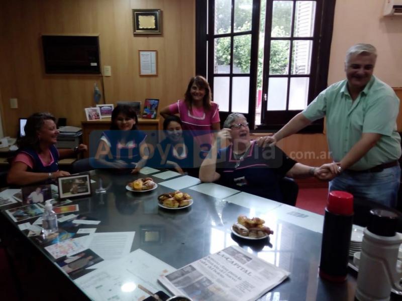 Esta mañana un grupo de porteras del colegio Santa Lucía visitaron al Intendente Nizar Esper. El motivo del encuentro fue simplemente comentarle y mostrarle al funcionario el trabajo diario que llevan adelante con los chicos.