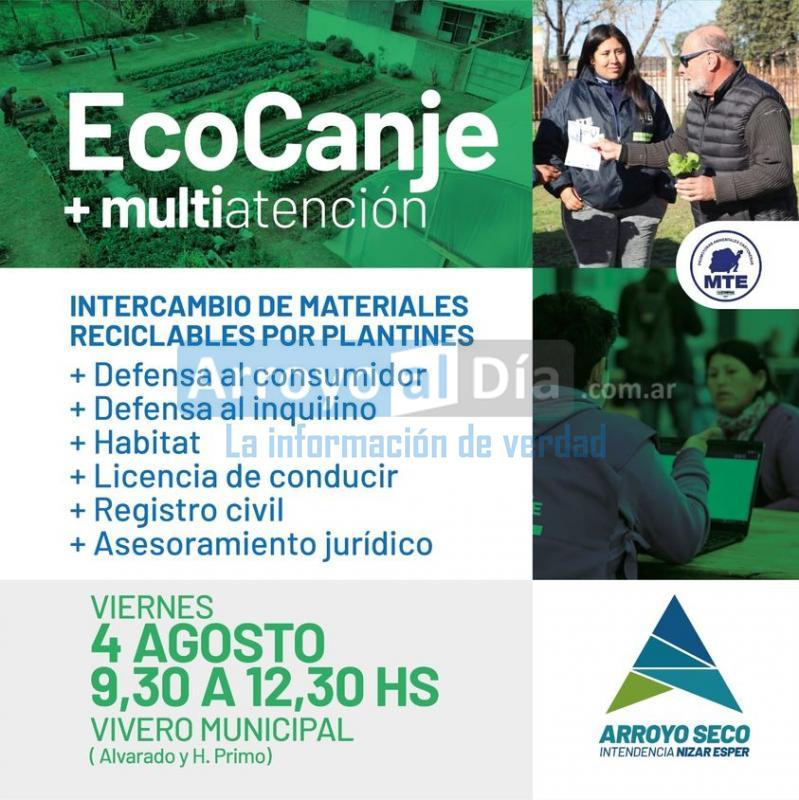 La Municipalidad de Arroyo Seco, informa que el este viernes 14 de julio, de 9 a 12hs, realizará en el Complejo Integral "Los Tiburones" una nueva jornada de EcoCanje.