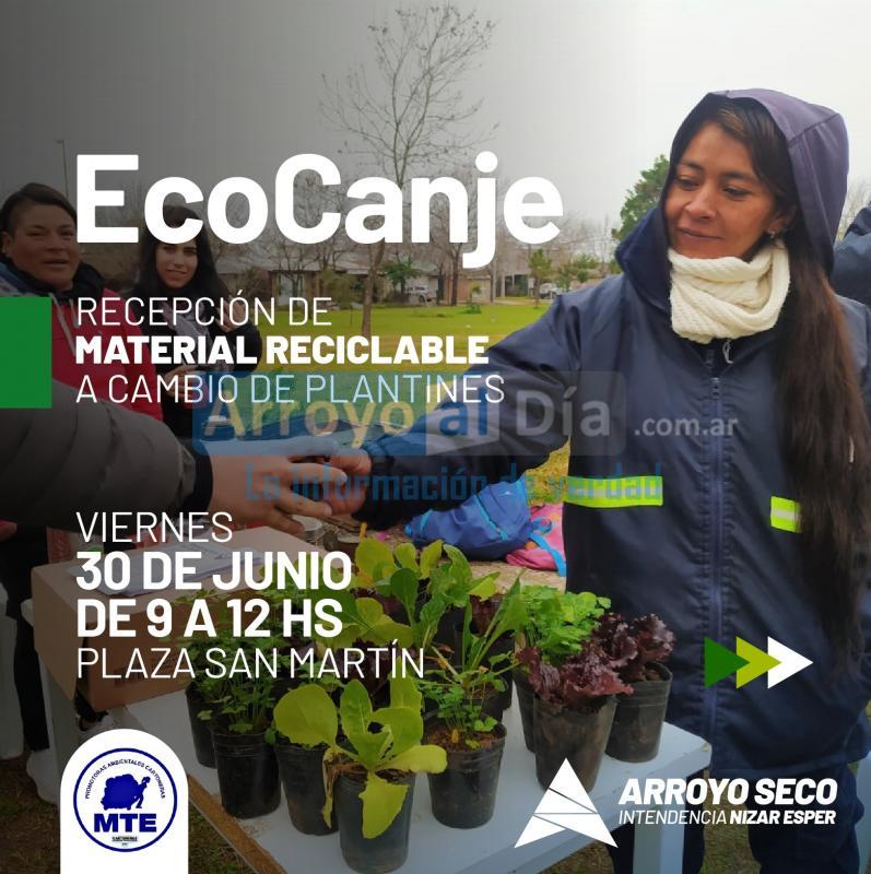 La Municipalidad de Arroyo Seco, informa que este viernes 30 de junio, de 9 a 12hs, se realizará en la plaza San Martín una nueva jornada de EcoCanje.