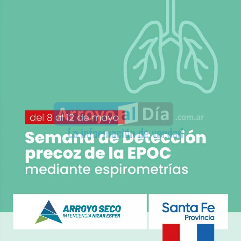 La Municipalidad de Arroyo Seco, el Samco N°50 y el Gobierno de Santa Fe, impulsan del 8 al 12 de mayo la "Semana de Detección Precoz de la Enfermedad Pulmonar Obstructiva Crónica (EPOC)".