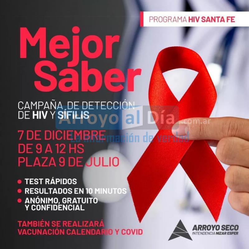 Bajo el nombre de "Mejor Saber", se efectuará una campaña de detección de HIV y Sífilis, el 7 de diciembre de 9 a 12hs en la plaza 9 de Julio.