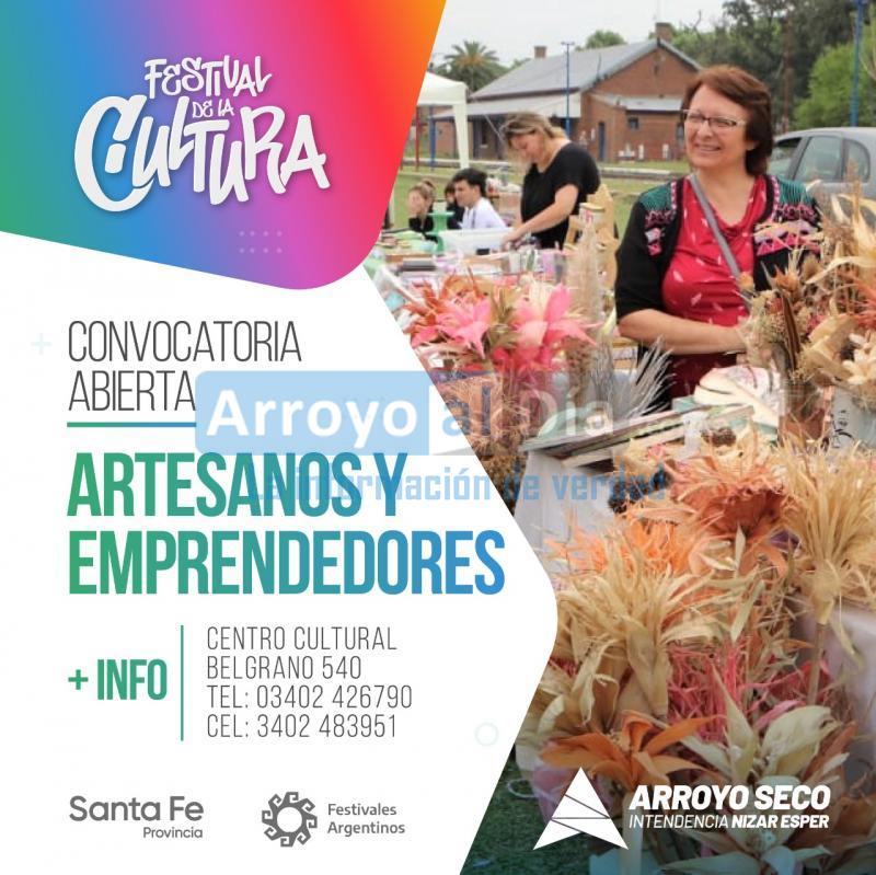 La Municipalidad de Arroyo Seco, por medio de la Secretaría de Cultura, Deportes y Educación, informa que en el marco del Festival de la Cultura 2023, se abre oficialmente la convocatoria para artesanos y emprendedores.