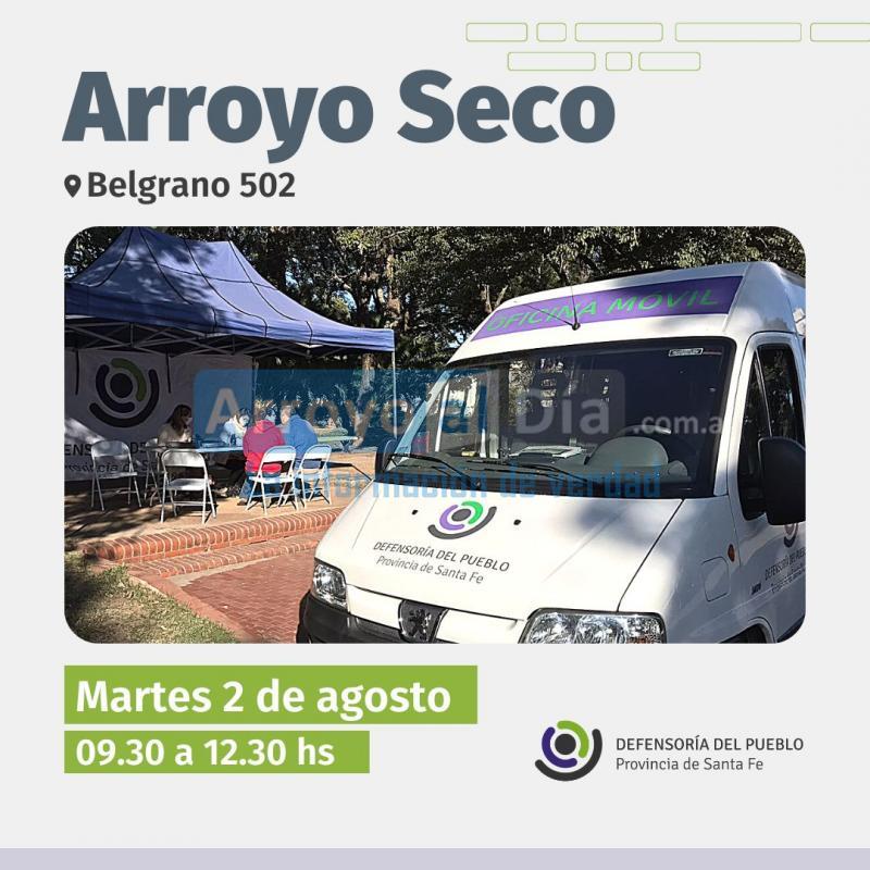 La Oficina Móvil de la Defensoría del Pueblo de Santa Fe atenderá en Arroyo Seco el próximo martes 2 de agosto en Belgrano 502 entre las 9.30 y las 12.30 horas.