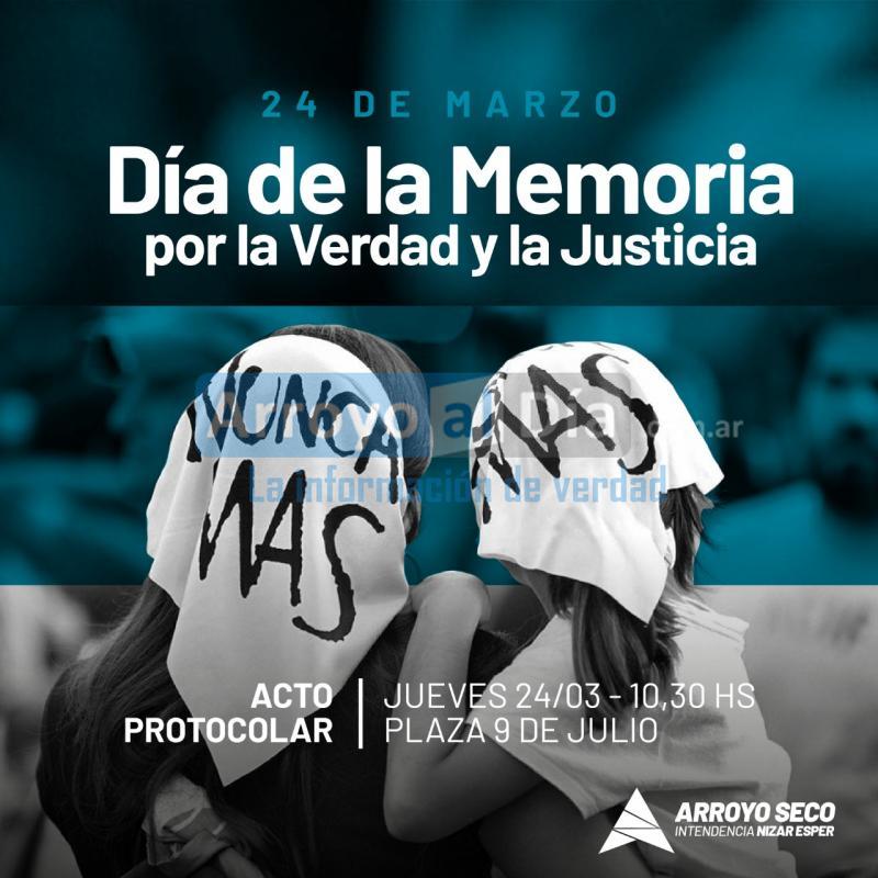 La Municipalidad de Arroyo Seco, invita a la comunidad a acompañar la conmemoración del próximo jueves 24 de marzo, Día de la Memoria por la Verdad y la Justicia.