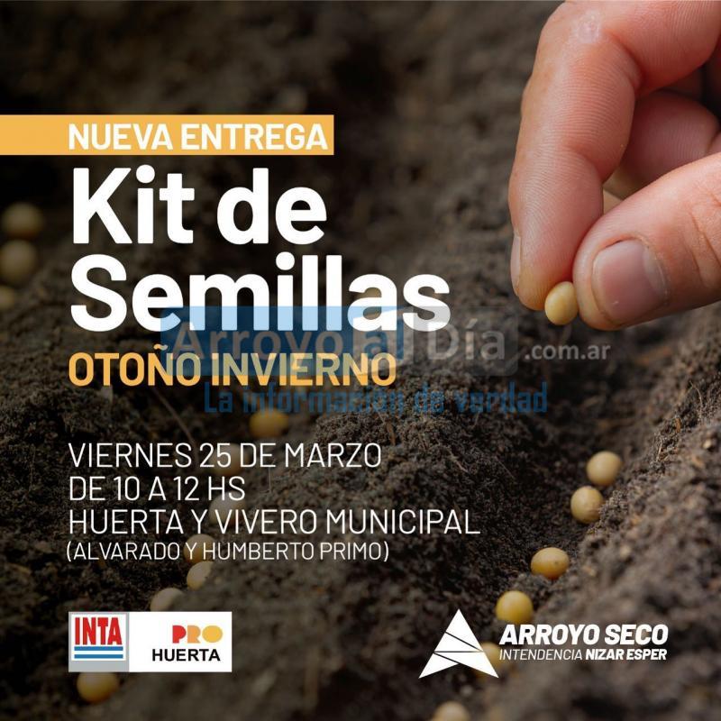 La Municipalidad de Arroyo Seco, junto a INTA y Pro Huerta, informan que el próximo viernes 25 de marzo se efectuará una nueva entrega de kit de semillas, en este caso, de la temporada otoño - invierno.