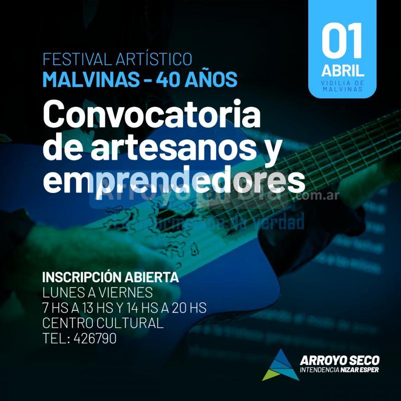 La Municipalidad de Arroyo Seco, por medio de la Secretaría de Cultura, Deportes y Educación, invita a artesanos y emprendedores a inscribirse para ser parte del Festival Artístico: Malvinas - 40 años.