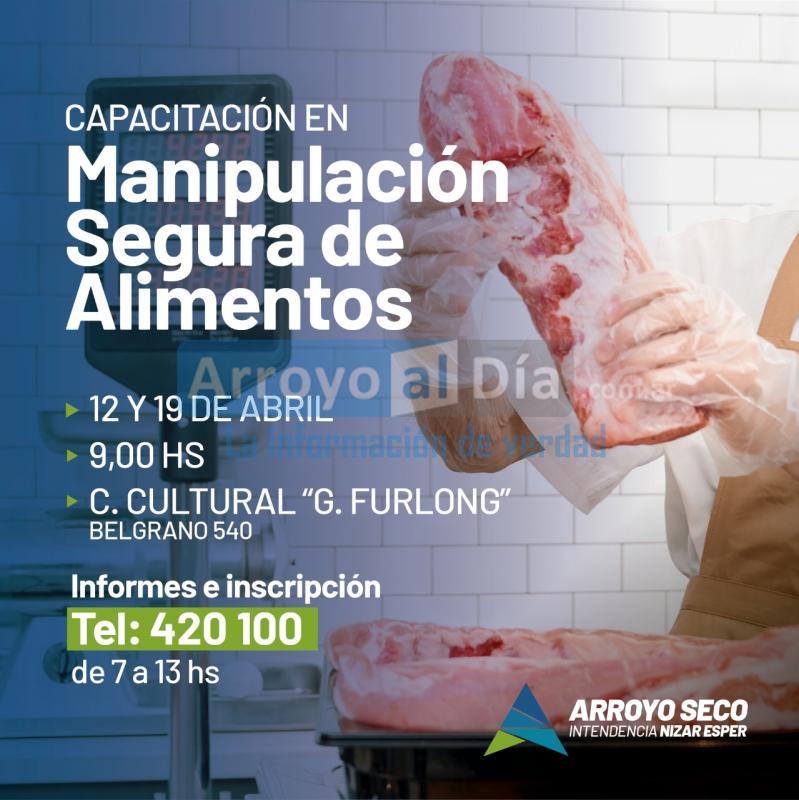 La Municipalidad de Arroyo Seco, convoca a quienes trabajen con sustancias alimenticias en la localidad a formar parte de la capacitación en manipulación segura de alimentos, a realizarse el 12 y el 19 del corriente mes, desde las 09:00hs en el Centro Cultural "Guillermo Furlong" (Belgrano 540).
