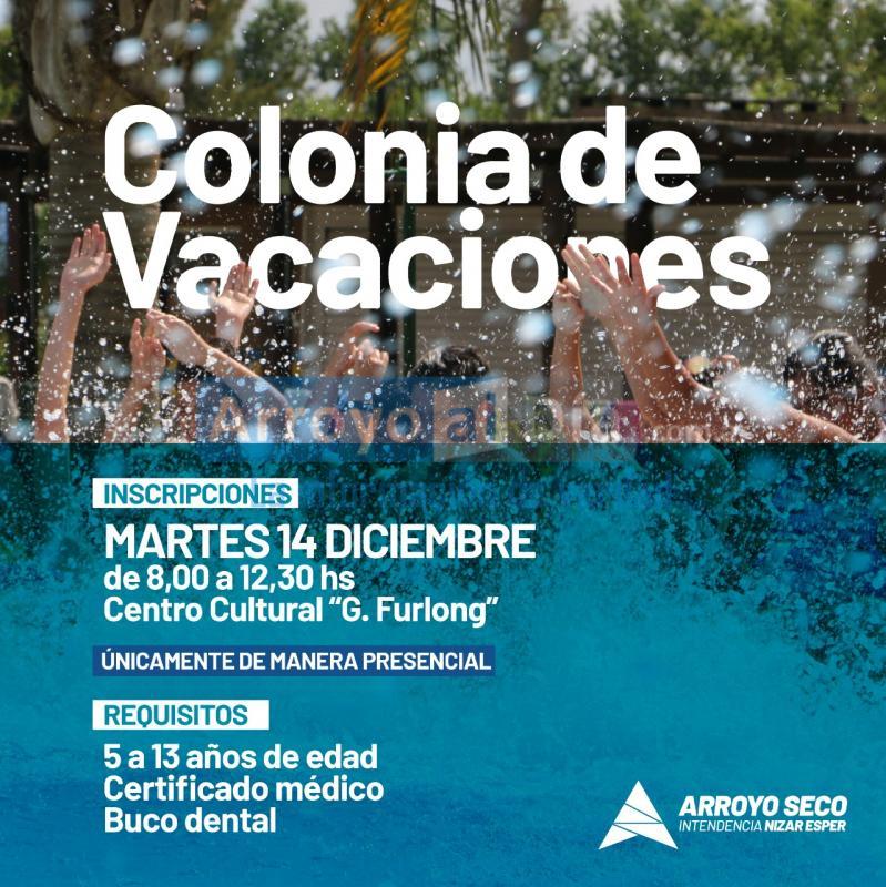 La Municipalidad de Arroyo Seco mediante la Secretaría de Cultural, Deportes y Educación, anuncia la apertura de inscripciones para la Colonia de Vacaciones Municipal.