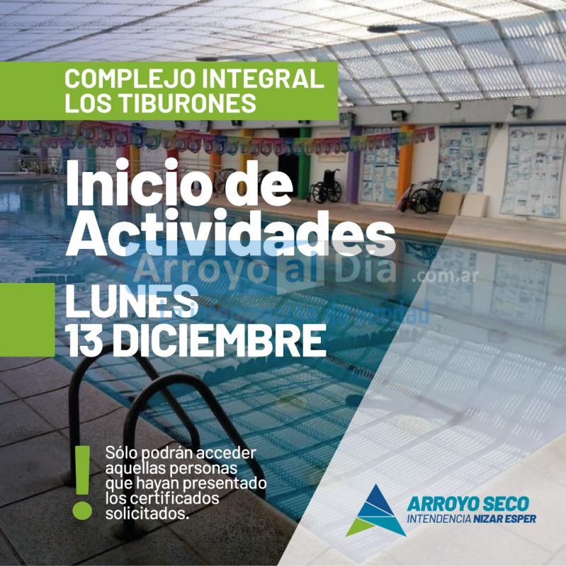 La Municipalidad de Arroyo Seco, informa que el próximo lunes 13 de diciembre, se dará inicio a las actividad en la pileta del Complejo Integral Los Tiburones.