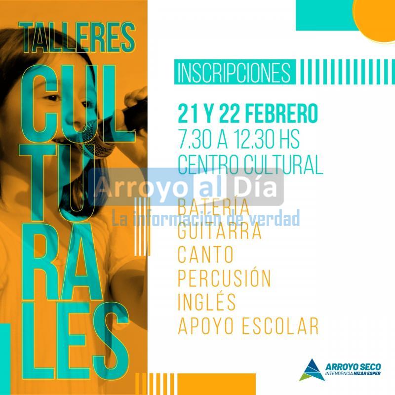 La Municipalidad de Arroyo Seco, mediante la Secretaría de Cultura, Deportes y Educación, informa a toda la población que a partir de la próxima semana comenzarán las inscripciones al año 2022 de nuestros talleres culturales.
