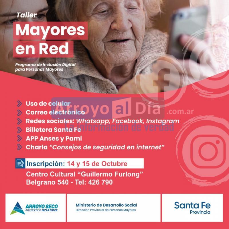La Municipalidad de Arroyo Seco, por medio de la iniciativa impulsada por el Ministerio de Desarrollo Social desde la Dirección Provincial de Personas Mayores del Gobierno de Santa Fe, abre las inscripciones para el taller denominado Mayores en Red.
