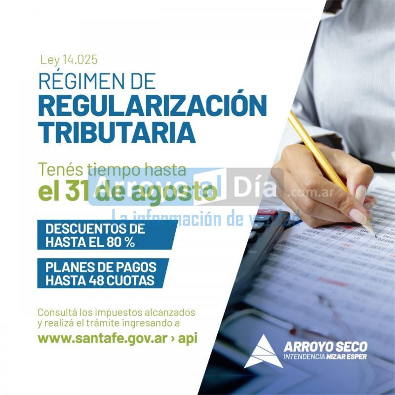 La Municipalidad de Arroyo Seco, por medio de la Ley N°14.025 establecida por el Gobierno de Santa Fe, informa los nuevos parámetros sobre el régimen de regularización tributaria.