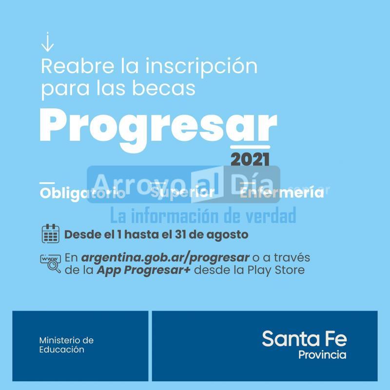 La Municipalidad de Arroyo Seco informa, por intermedio del Ministerio de Educación de Santa Fe, que desde el 1° de agosto hasta el 31 del corriente reabrieron las inscripciones para las becas del programa Progresar.