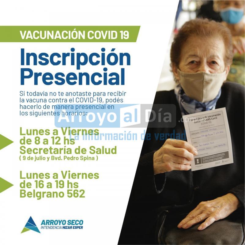 La Municipalidad de Arroyo Seco informa que, si todavía no te anotaste para recibir la vacuna contra el Covid-19 podés hacerlo de manera presencial