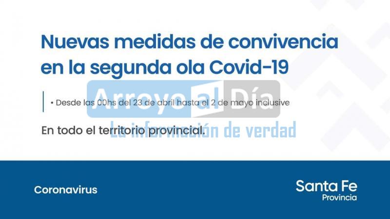 La Municipalidad de Arroyo Seco informa que, en el marco de las nuevas medidas de convivencia por la segunda ola de Covid-19, adhiere a las siguientes normativas dispuestas por el Gobierno de la Provincia de Santa Fe .