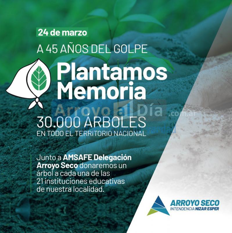 En el marco del 24 de marzo, Día Nacional de la Memoria, por la Verdad y la Justicia, la Municipalidad de Arroyo Seco junto a la delegación local de AMSAFE donarán un árbol a cada una de las 21 instituciones educativas de nuestra localidad, sumándose de este modo a la campaña nacional Plantamos Memoria.