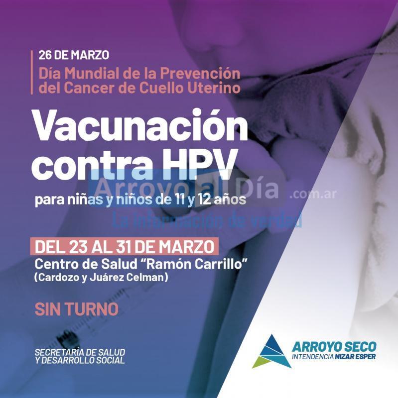 La Municipalidad de Arroyo Seco, mediante la Secretaría de Salud y Desarrollo Social, informa que del 23 al 31 de marzo se lleva a cabo la semana de la prevención del cáncer de cuello uterino en el marco del 26 del corriente mes, donde se conmemora el día.