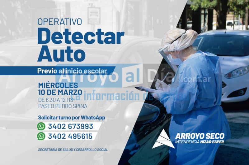 La Secretaría de Salud y Desarrollo Social de nuestro Gobierno Municipal, informa que en el marco de la pandemia Covid-19, se realizará el próximo miércoles 10 de marzo, un nuevo operativo "Detectar Auto", el cual consiste en realizar tests de detección rápida a personas que presenten síntomas compatibles con la enfermedad. En esta ocasión se realizará previamente al inicio del ciclo lectivo, con el objetivo de profundizar la búsqueda territorial activa de casos para prevenir y así bloquear los contagios.