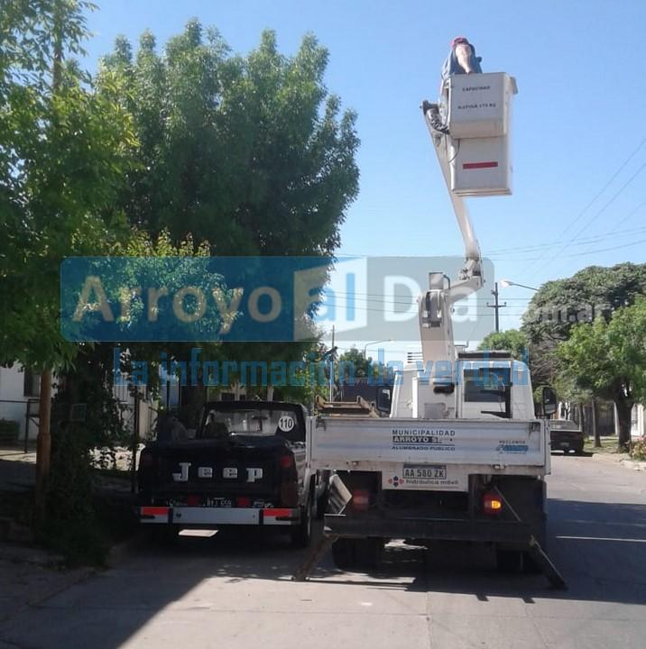 Personal de la Secretaría de Obras y Servicios Públicos, dependiente del Gobierno Municipal, desarrolla tarea de reparación en el servicio de alumbrado público en diversas calles.