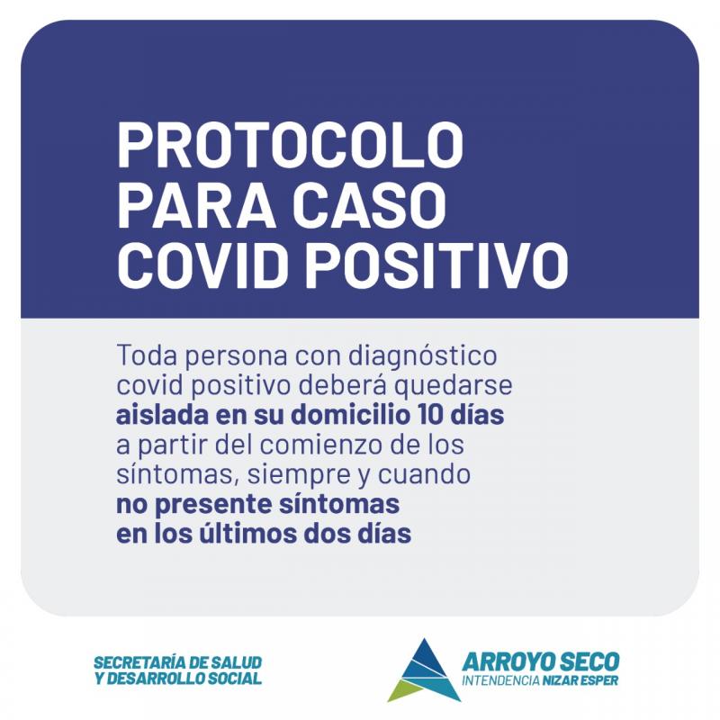 La Municipalidad de Arroyo Seco, mediante la Secretaría de Salud y Desarrollo Social, informa a la comunidad los pasos y el protocolo a seguir en el caso de contraer y ser positivo del virus Covid-19.