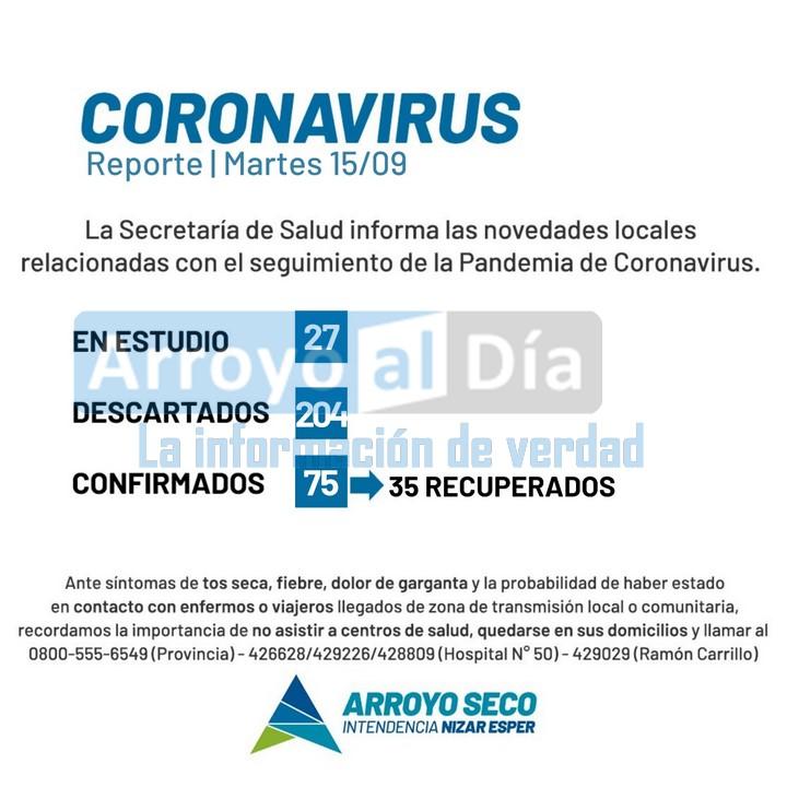 La Municipalidad de Arroyo Seco, mediante la Secretaría de Salud, informa las novedades locales relacionadas al seguimiento de la pandemia por el virus COVID-19.