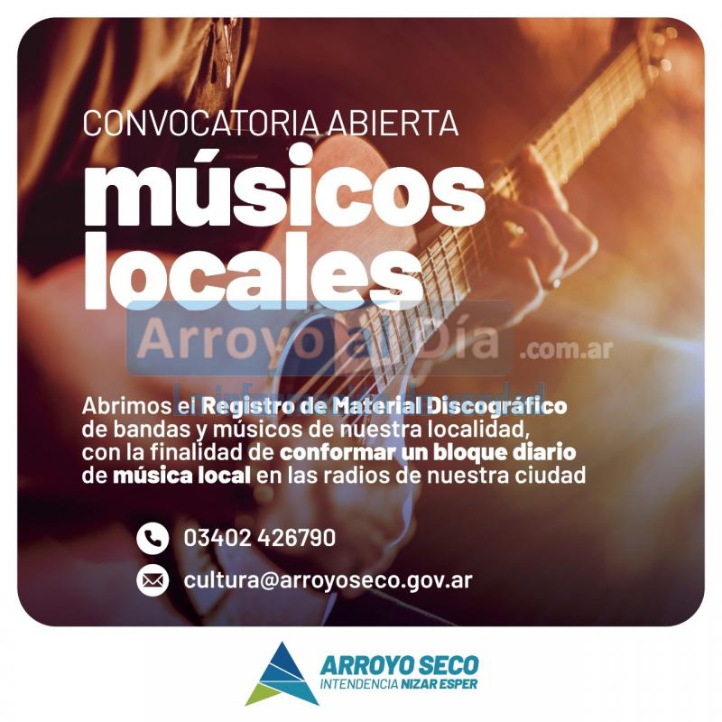 La Municipalidad de Arroyo Seco, por intermedio de la Secretaría de Cultura, Deportes y Educación, abre el Registro de Material Discográfico de bandas y músicos de nuestra localidad.