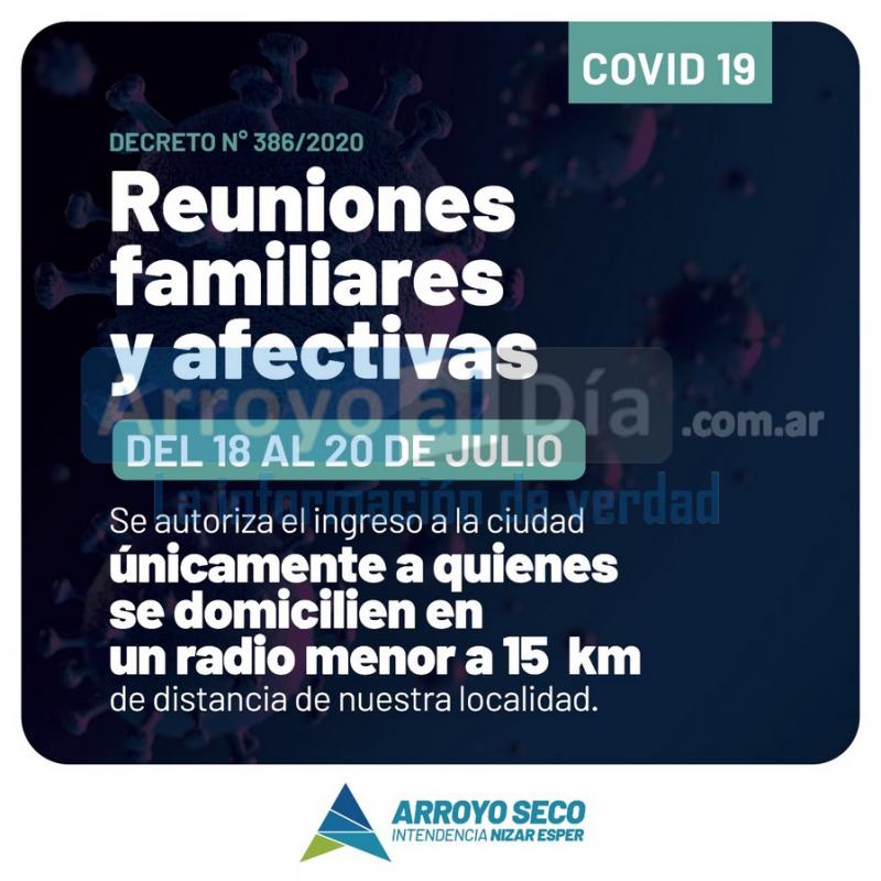 En el marco de la pandemia Covid-19, la Municipalidad de Arroyo Seco dispone mediante el Decreto del Poder Ejecutivo local N°386/2020 que: