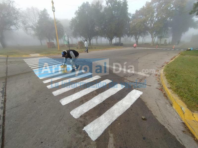La Municipalidad de Arroyo Seco, mediante la Secretaría de Obras y Servicios Públicos, ultima tareas en pintura sobre el Boulevard Mansueto Maiorano, en las sendas peatonales.