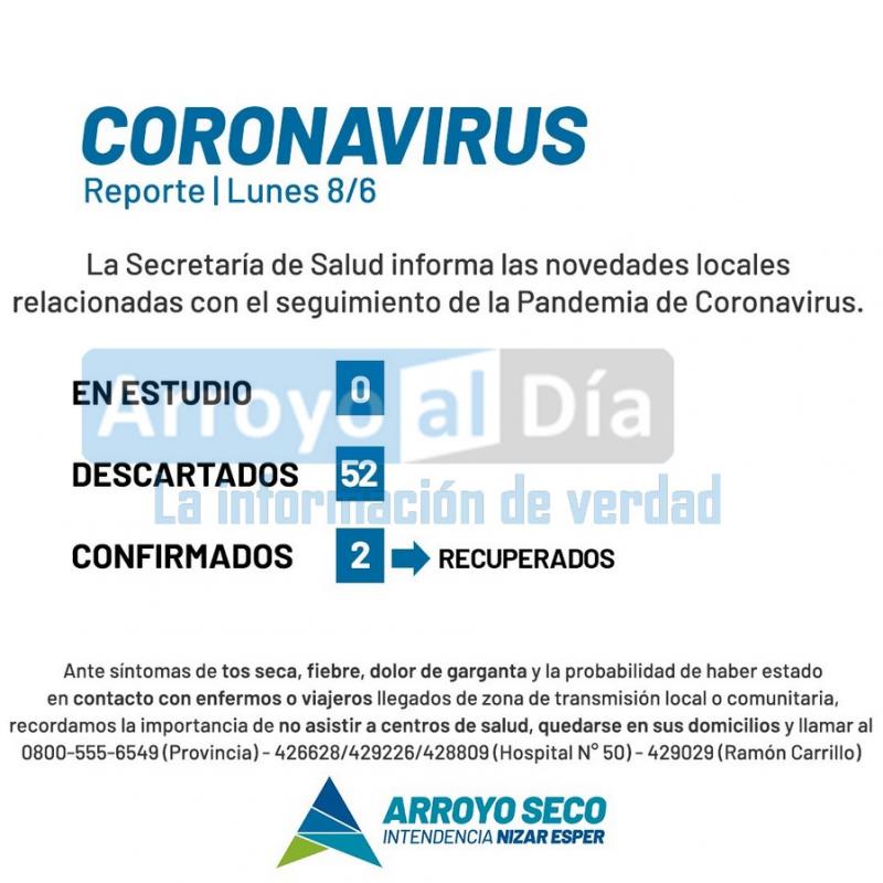 La Municipalidad de Arroyo Seco, mediante la Secretaría de Salud, informa las novedades locales relacionadas al seguimiento de la pandemia por el virus COVID-19.