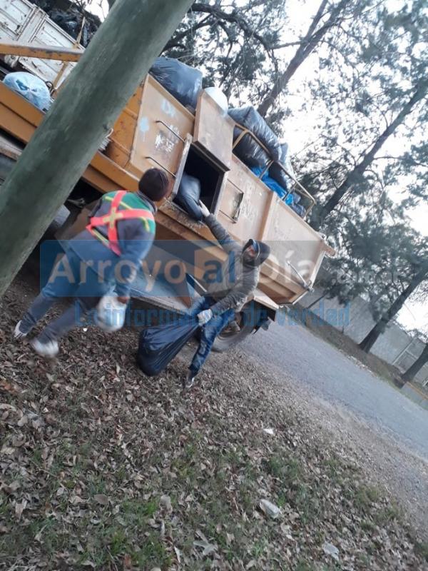 Personal dependiente de la Secretaría de Obras y Servicios Públicos del Gobierno Municipal, avanza con las tareas de limpieza bajo la recolección de residuos en la localidad.