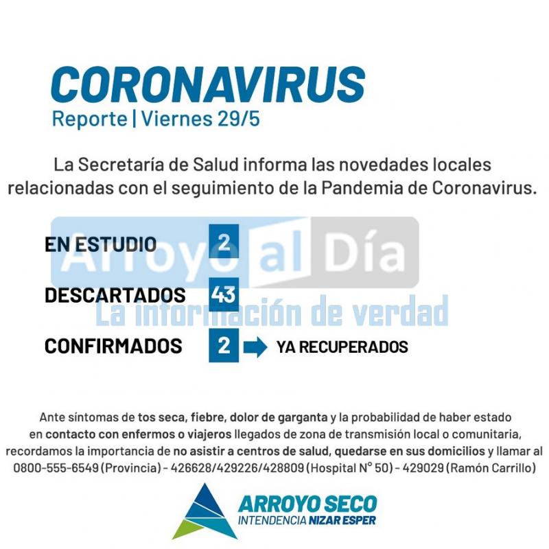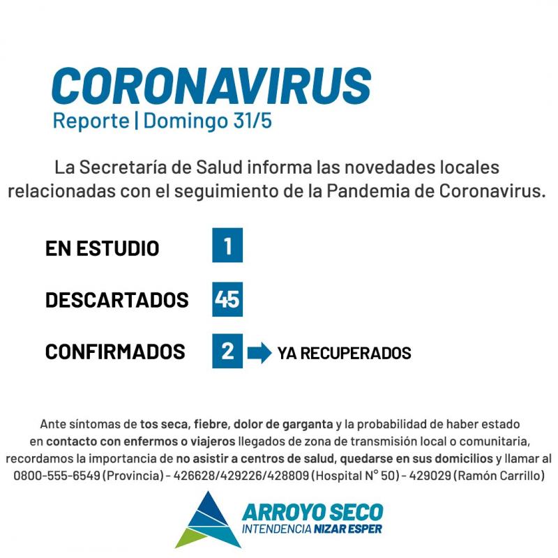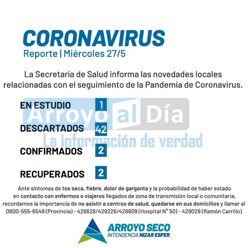 La Municipalidad de Arroyo Seco, mediante la Secretaría de Salud, informa las novedades locales relacionadas al seguimiento de la pandemia por el virus COVID-19.