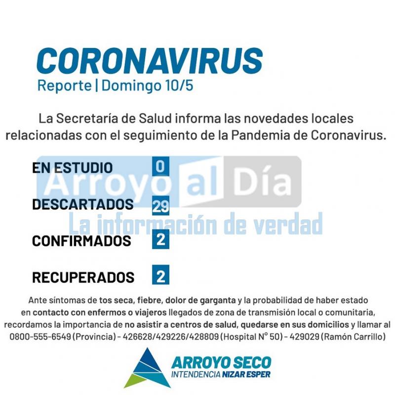 La Municipalidad de Arroyo Seco, mediante la Secretaría de Salud, informa las novedades locales relacionadas al seguimiento de la pandemia por el virus COVID-19.