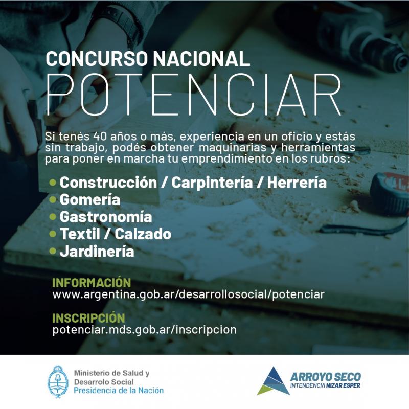 Desde la Municipalidad de Arroyo Seco, informamos que está disponible esta propuesta del Gobierno Nacional denominada "CONCURSO NACIONAL POTENCIAR".
