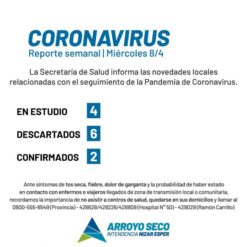 La Municipalidad de Arroyo Seco, mediante la Secretaría de Salud, informa las novedades locales relacionadas al seguimiento de la pandemia por el virus COVID-19.